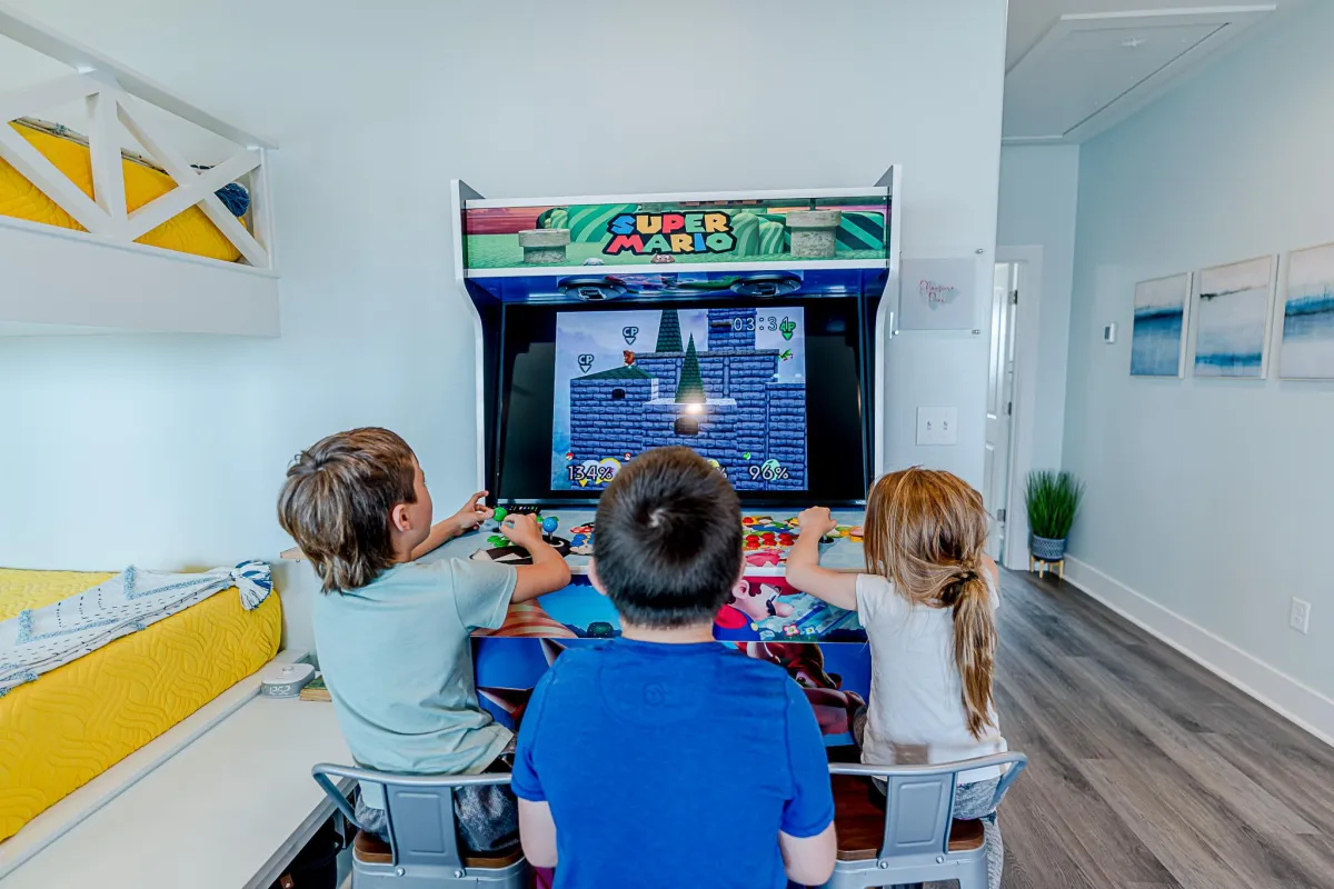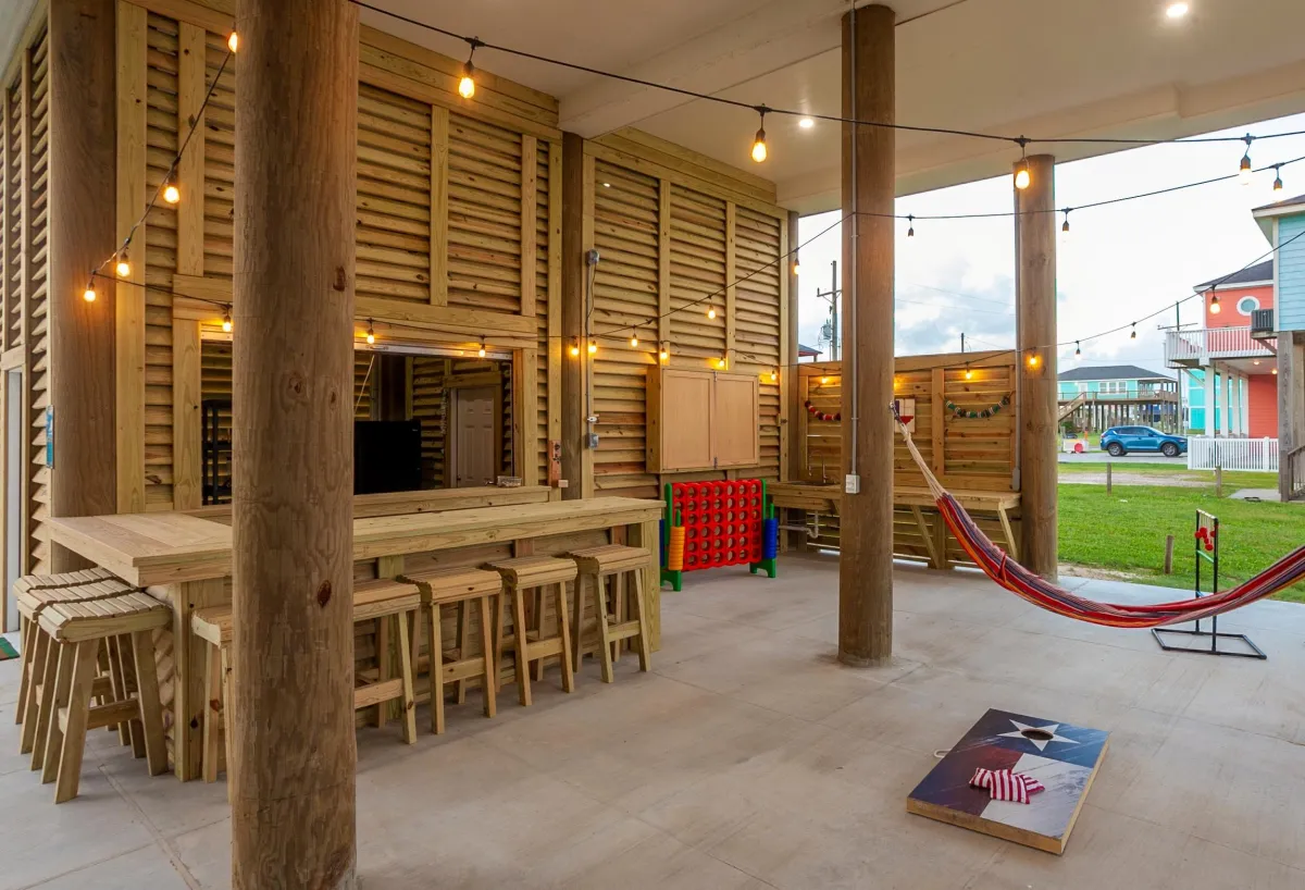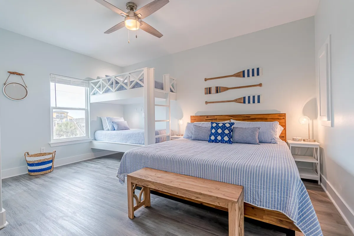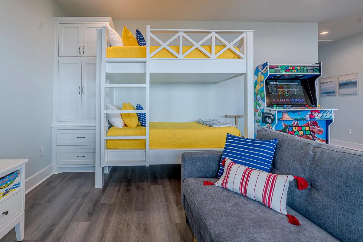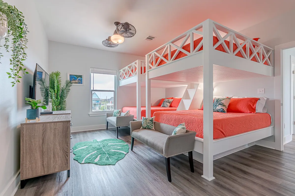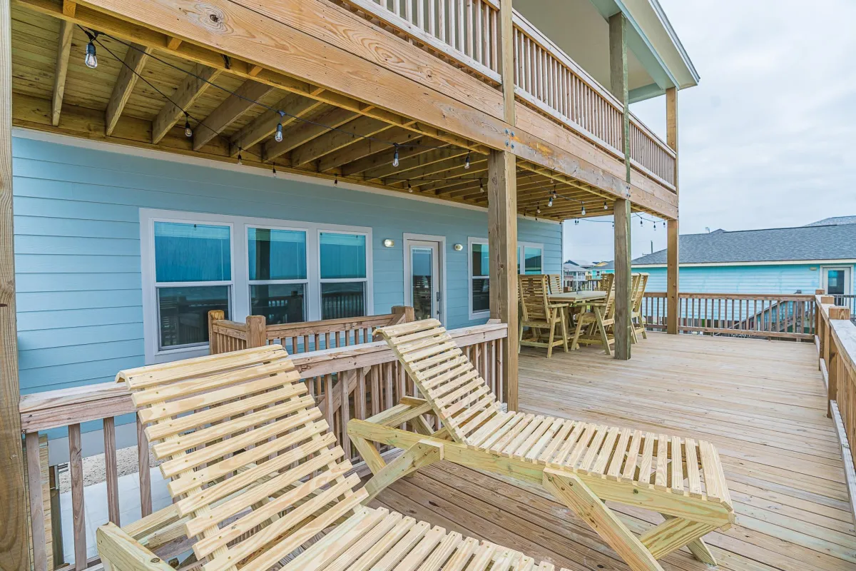 Redfish Retreat is a large 5 bedroom home (2,440 sq feet) that can comfortably accommodate up to 20 guests. From the immaculate master suite and its bonus coffee bar to sturdy bunks and an open game room with arcade games and a foosball table, there is simply nothing more you could wish for in a beach-front home.