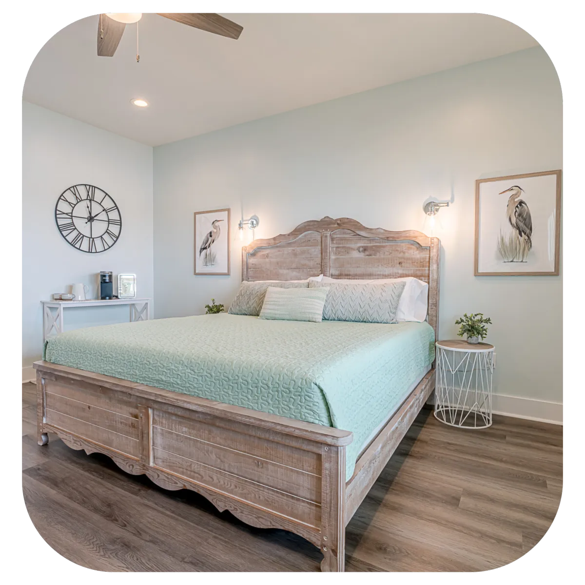 Redfish Retreat is located right on the beach and in the center of beach life fun during high vacation season. We have placed sound machines near every bed to make sure you still sleep like a baby and are ready for the day.